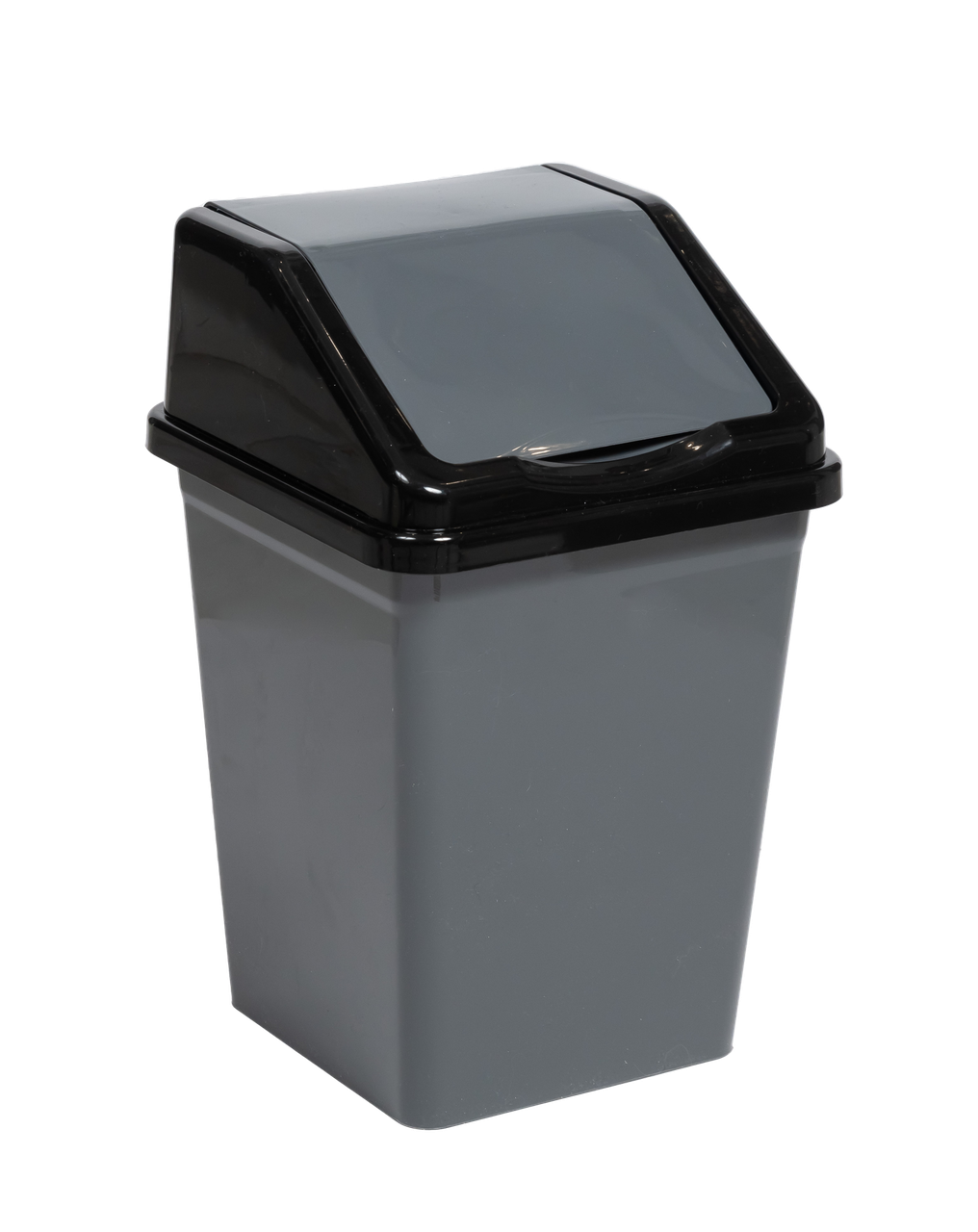 Ведро для мусора с подвижной крышкой 16л квадратное (серо/черный)